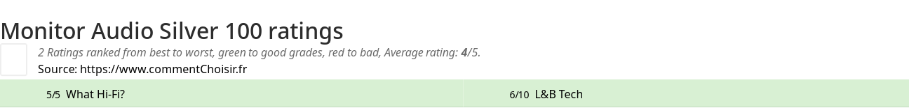 Theses reviews and tests from Speakers magazines and websites give 2 ratings, we get this average rating to this Monitor Audio product : 4/5.