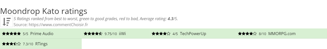 Theses reviews and tests from Headphones magazines and websites give 5 ratings, we get this average rating to this Moondrop product : 4.2/5.