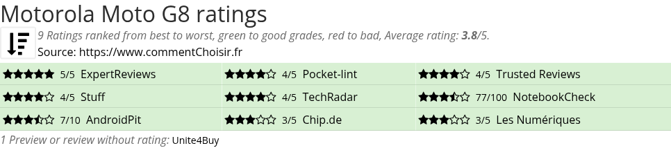 Theses reviews and tests from Smartphones magazines and websites give 9 ratings, we get this average rating to this Motorola product : 3.8/5.