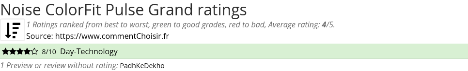 Noise ColorFit Pulse Grand review : We found only one review on this product, so it sounds difficult to give a global advice, this average rating of 4/5 may not be representative.