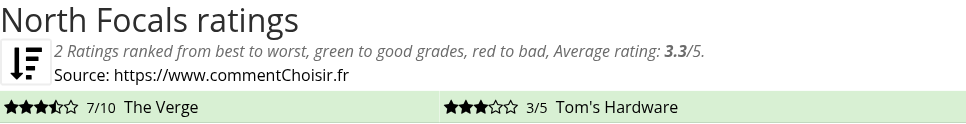 Theses reviews and tests from Video Games magazines and websites give 2 ratings, we get this average rating to this North product : 3.3/5.