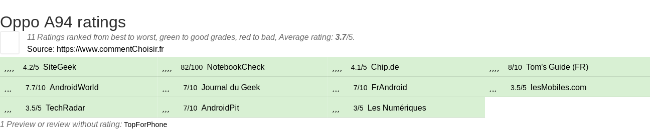 | 7/10 FrAndroid | 7/10 AndroidPit | 3/5 Les Numériques |