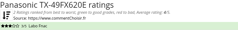 Check all the 2 reviews find on Televisions Panasonic TX-49FX620E, with the 2 ratings, comments, pros & cons from the reviewers.