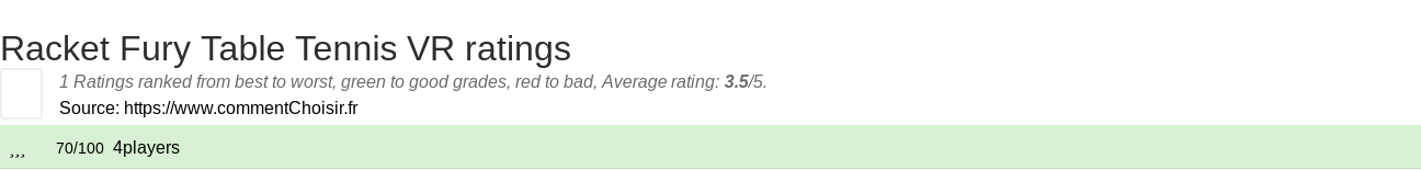 Racket Fury Table Tennis VR review : We found only one review on this product, so it sounds difficult to give a global advice, this average rating of 3.5/5 may not be representative.