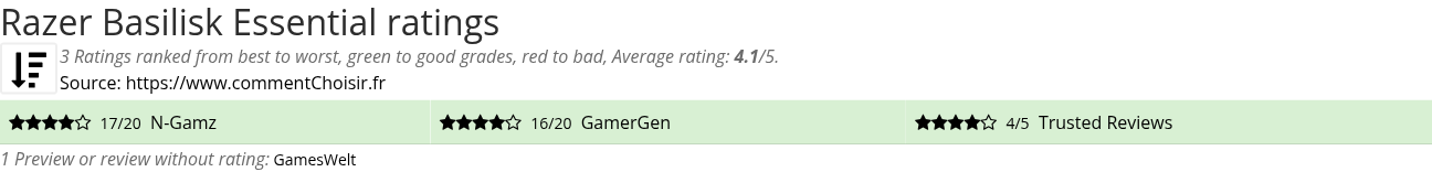 Razer Basilisk Essential review : With an average rating of 4.1/5, you can buy Razer Basilisk Essential with your eyes closed (or almost). The opinions of the testers seem unanimous !