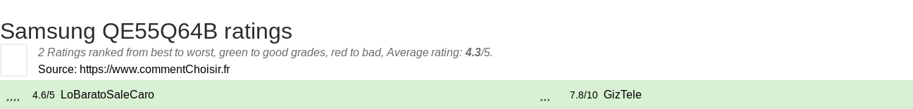Check all the 5 reviews find on Televisions Samsung QE55Q64B, with the 4 ratings, comments, pros & cons from the reviewers.