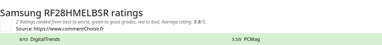 Theses reviews and tests from Fridge magazines and websites give 2 ratings, we get this average rating to this Samsung product : 3.5/5.