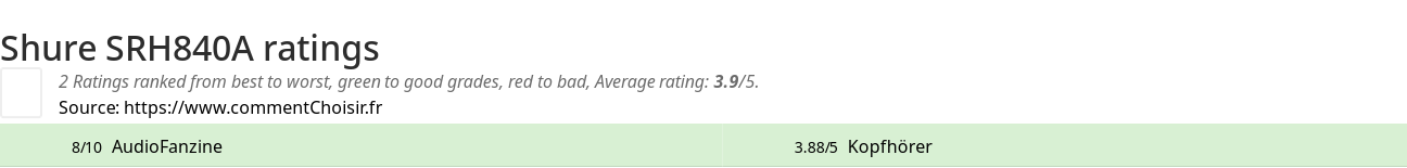 Theses reviews and tests from Headphones magazines and websites give 2 ratings, we get this average rating to this Shure product : 3.5/5.