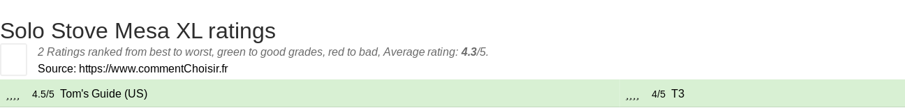 Theses reviews and tests from Kitchen magazines and websites give 2 ratings, we get this average rating to this Solo Stove product : 4/5.