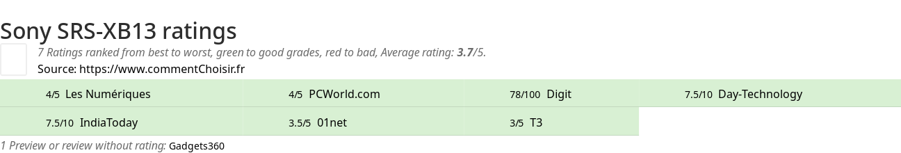 Theses reviews and tests from Speakers magazines and websites give 7 ratings, we get this average rating to this Sony product : 3.6/5.