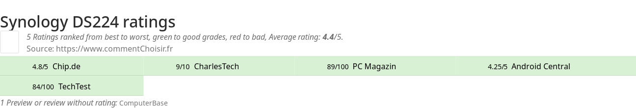 Theses reviews and tests from Hard Drive magazines and websites give 5 ratings, we get this average rating to this Synology product : 4.2/5.
