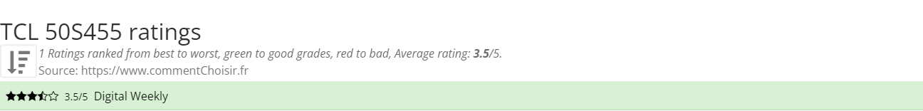 Theses reviews and tests from Televisions magazines and websites give 3 ratings, we get this average rating to this TCL product : 4.3/5.