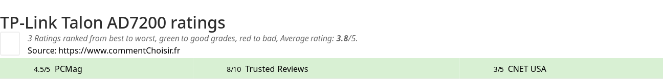 Theses reviews and tests from Network magazines and websites give 3 ratings, we get this average rating to this TP-Link product : 3.7/5.
