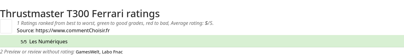 Thrustmaster T300 Ferrari review : We found only one review on this product, so it sounds difficult to give a global advice, this average rating of 5/5 may not be representative.