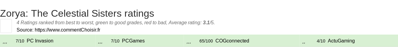 Theses reviews and tests from Video Games magazines and websites give 4 ratings, we get this average rating to this Zorya: The Celestial Sisters product : 3.1/5.