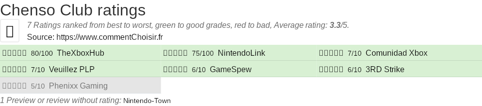 Theses reviews and tests from Video Games magazines and websites give 7 ratings, we get this average rating to this Chenso Club product : 3.3/5.