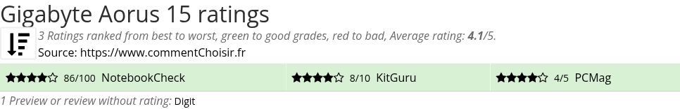 Theses reviews and tests from Laptops magazines and websites give 3 ratings, we get this average rating to this Gigabyte product : 4.1/5.