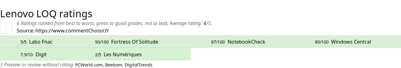 | 80/100 Windows Central | 7/10 Digit | 2/5 Les Numériques |