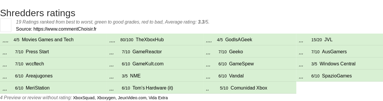| 6/10 Tom’s Hardware (it) | 5/10 Comunidad Xbox |