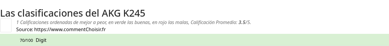 Entre estas pruebas de sitios de Internet y revistas especializadas en Auriculares, 1 dieron una calificación y obtenemos una calificación promedio de 3.5/5 para este producto AKG.