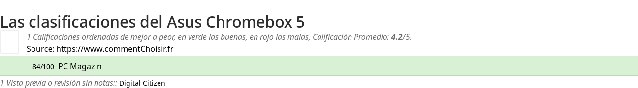 Asus Chromebox 5 analisis: Solo hemos encontrado una prueba sobre este producto, por lo que es difícil dar una opinión general y esta calificación de 4.2/5 no puede ser realmente representativa.