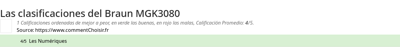 Las calificaciones de los sitios de Internet y las revistas pueden estar sesgadas, al menos con las reseñas de los clientes y los usuarios que compraron Braun MGK3080 en Amazon o Fnac, estamos seguros de que tenemos reseñas reales sobre este producto. (los enlaces a las tiendas son patrocinados)