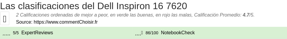 Las calificaciones de los sitios de Internet y las revistas pueden estar sesgadas, al menos con las reseñas de los clientes y los usuarios que compraron Dell Inspiron 16 7620 en Amazon o Fnac, estamos seguros de que tenemos reseñas reales sobre este producto. (los enlaces a las tiendas son patrocinados)