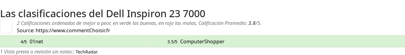 Aquí están las 3 revisiones y pruebas encontradas en el Ordenadores portátiles Dell Inspiron 23 7000 con las 2 calificaciones y comentarios de los evaluadores en su revisión.