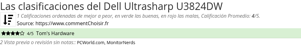 Aquí están las 3 revisiones y pruebas encontradas en el Monitores Dell Ultrasharp U3824DW con las 1 calificaciones y comentarios de los evaluadores en su revisión.