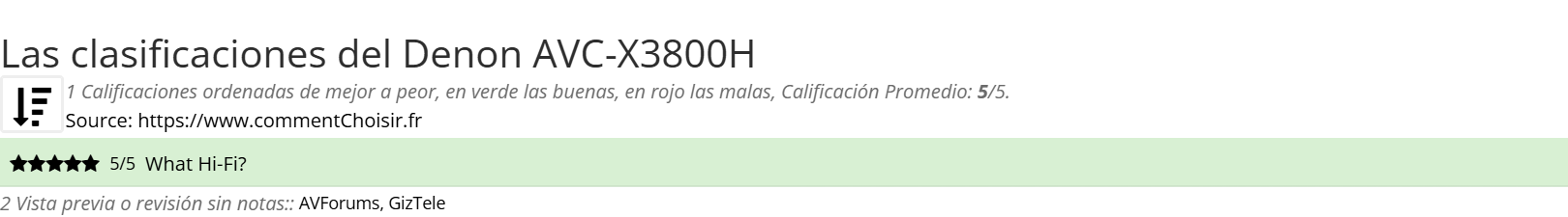Aquí están las 3 revisiones y pruebas encontradas en el Denon AVC-X3800H con las 1 calificaciones y comentarios de los evaluadores en su revisión.