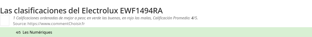 Entre estas pruebas de sitios de Internet y revistas especializadas en Lavadora, 1 dieron una calificación y obtenemos una calificación promedio de 4/5 para este producto Electrolux.