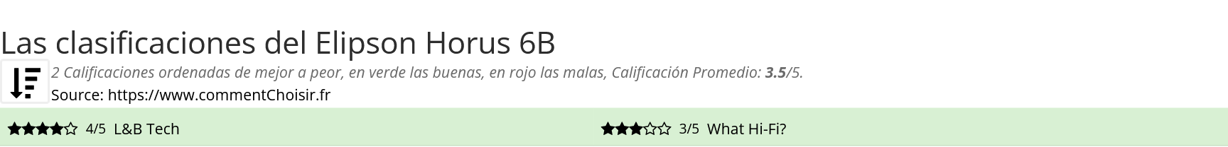 Aquí están las 2 revisiones y pruebas encontradas en el Elipson Horus 6B con las 2 calificaciones y comentarios de los evaluadores en su revisión.