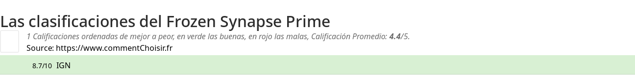 Entre estas pruebas de sitios de Internet y revistas especializadas en Videojuego, 1 dieron una calificación y obtenemos una calificación promedio de 4/5 para este producto Frozen Synapse.