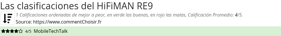 Entre estas pruebas de sitios de Internet y revistas especializadas en Smartphones, 1 dieron una calificación y obtenemos una calificación promedio de 4/5 para este producto HiFiMAN.