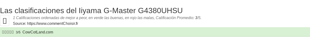 Iiyama G-Master G4380UHSU analisis: Solo hemos encontrado una prueba sobre este producto, por lo que es difícil dar una opinión general y esta calificación de 3/5 no puede ser realmente representativa.