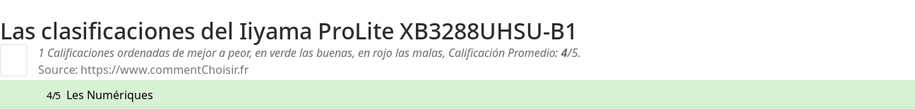 Aquí están las 1 revisiones y pruebas encontradas en el Monitores Iiyama ProLite XB3288UHSU-B1 con las 1 calificaciones y comentarios de los evaluadores en su revisión.