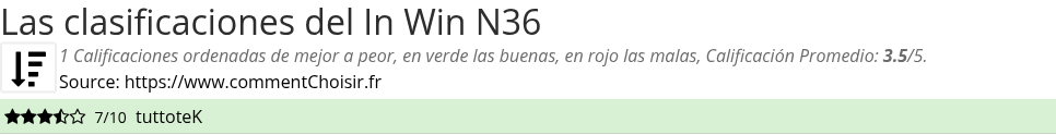 Las calificaciones de los sitios de Internet y las revistas pueden estar sesgadas, al menos con las reseñas de los clientes y los usuarios que compraron In Win N36 en Amazon o Fnac, estamos seguros de que tenemos reseñas reales sobre este producto. (los enlaces a las tiendas son patrocinados)