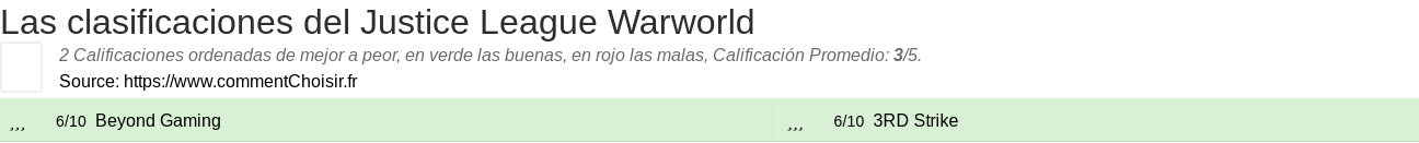 Aquí están las 2 revisiones y pruebas encontradas en el Películas y serie Justice League Warworld con las 2 calificaciones y comentarios de los evaluadores en su revisión.