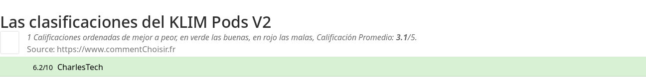 Entre estas pruebas de sitios de Internet y revistas especializadas en Auriculares, 1 dieron una calificación y obtenemos una calificación promedio de 3/5 para este producto KLIM.