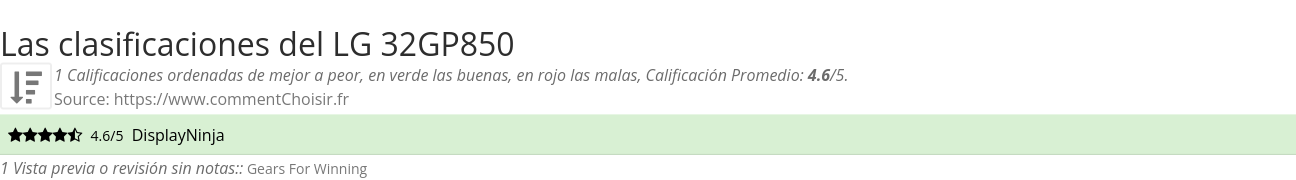 Aquí están las 2 revisiones y pruebas encontradas en el Monitores LG 32GP850 con las 1 calificaciones y comentarios de los evaluadores en su revisión.