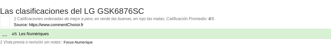 - 2 reseñas y opiniones con 1 valoraciones para el LG GSK6876SC