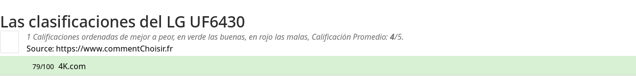 Las calificaciones de los sitios de Internet y las revistas pueden estar sesgadas, al menos con las reseñas de los clientes y los usuarios que compraron LG UF6430 en Amazon o Fnac, estamos seguros de que tenemos reseñas reales sobre este producto. (los enlaces a las tiendas son patrocinados)