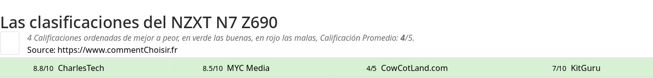 Aquí están las 4 revisiones y pruebas encontradas en el Componentes NZXT N7 Z690 con las 4 calificaciones y comentarios de los evaluadores en su revisión.