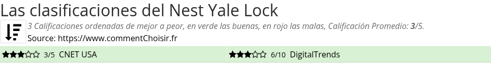 Aquí están las 3 revisiones y pruebas encontradas en el Automatización Nest Yale Lock con las 3 calificaciones y comentarios de los evaluadores en su revisión.