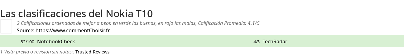 Las calificaciones de los sitios de Internet y las revistas pueden estar sesgadas, al menos con las reseñas de los clientes y los usuarios que compraron Nokia T10 en Amazon o Fnac, estamos seguros de que tenemos reseñas reales sobre este producto. (los enlaces a las tiendas son patrocinados)
