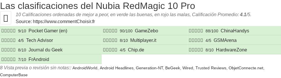 Las calificaciones de los sitios de Internet y las revistas pueden estar sesgadas, al menos con las reseñas de los clientes y los usuarios que compraron Nubia RedMagic 10 Pro en Amazon o Fnac, estamos seguros de que tenemos reseñas reales sobre este producto. (los enlaces a las tiendas son patrocinados)