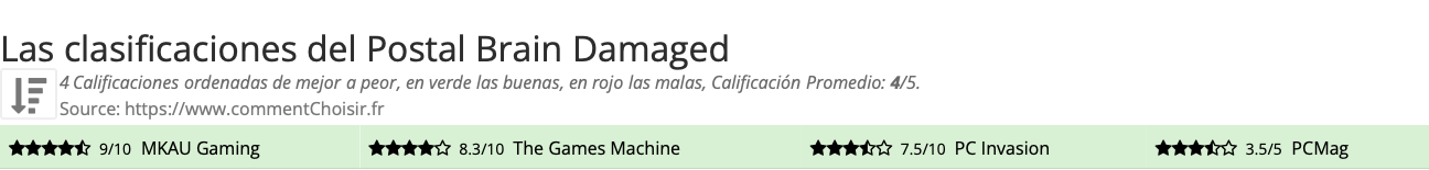 Las calificaciones de los sitios de Internet y las revistas pueden estar sesgadas, al menos con las reseñas de los clientes y los usuarios que compraron Postal Brain Damaged en Amazon o Fnac, estamos seguros de que tenemos reseñas reales sobre este producto. (los enlaces a las tiendas son patrocinados)