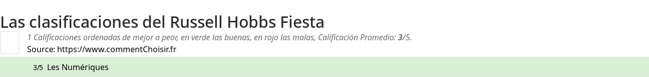 Entre estas pruebas de sitios de Internet y revistas especializadas en , 1 dieron una calificación y obtenemos una calificación promedio de 3/5 para este producto Russell Hobbs.