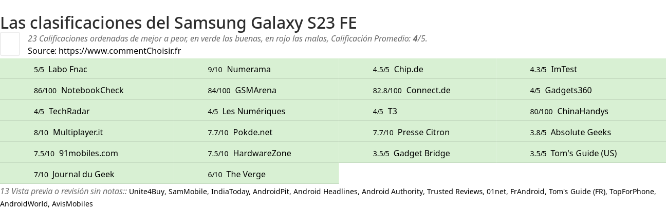 Las calificaciones de los sitios de Internet y las revistas pueden estar sesgadas, al menos con las reseñas de los clientes y los usuarios que compraron Samsung Galaxy S23 FE en Amazon o Fnac, estamos seguros de que tenemos reseñas reales sobre este producto. (los enlaces a las tiendas son patrocinados)