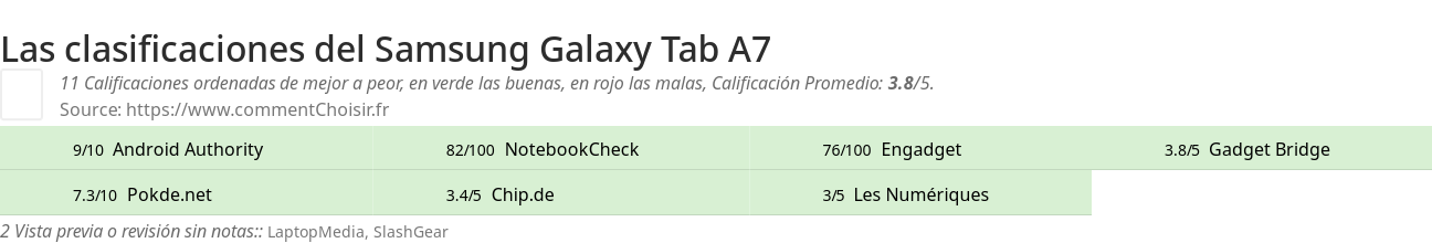 Las calificaciones de los sitios de Internet y las revistas pueden estar sesgadas, al menos con las reseñas de los clientes y los usuarios que compraron Samsung Galaxy Tab A7 en Amazon o Fnac, estamos seguros de que tenemos reseñas reales sobre este producto. (los enlaces a las tiendas son patrocinados)